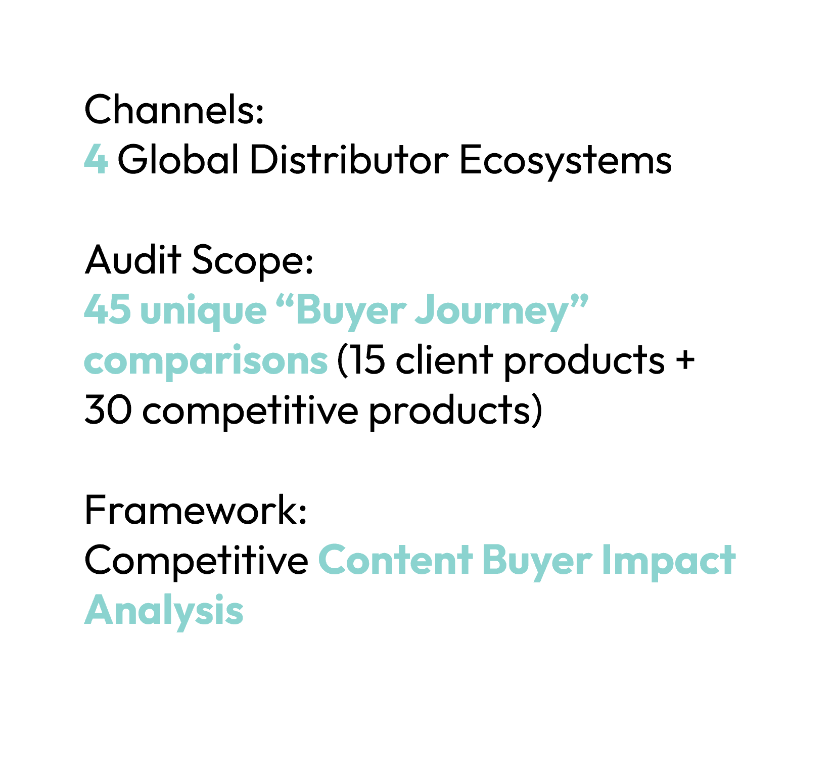 I conducted a multi-phase Competitive Content Buyer Impact Analysis Audit of 15+ product lines across the global distributor ecosystem. This strategic intervention involved:
